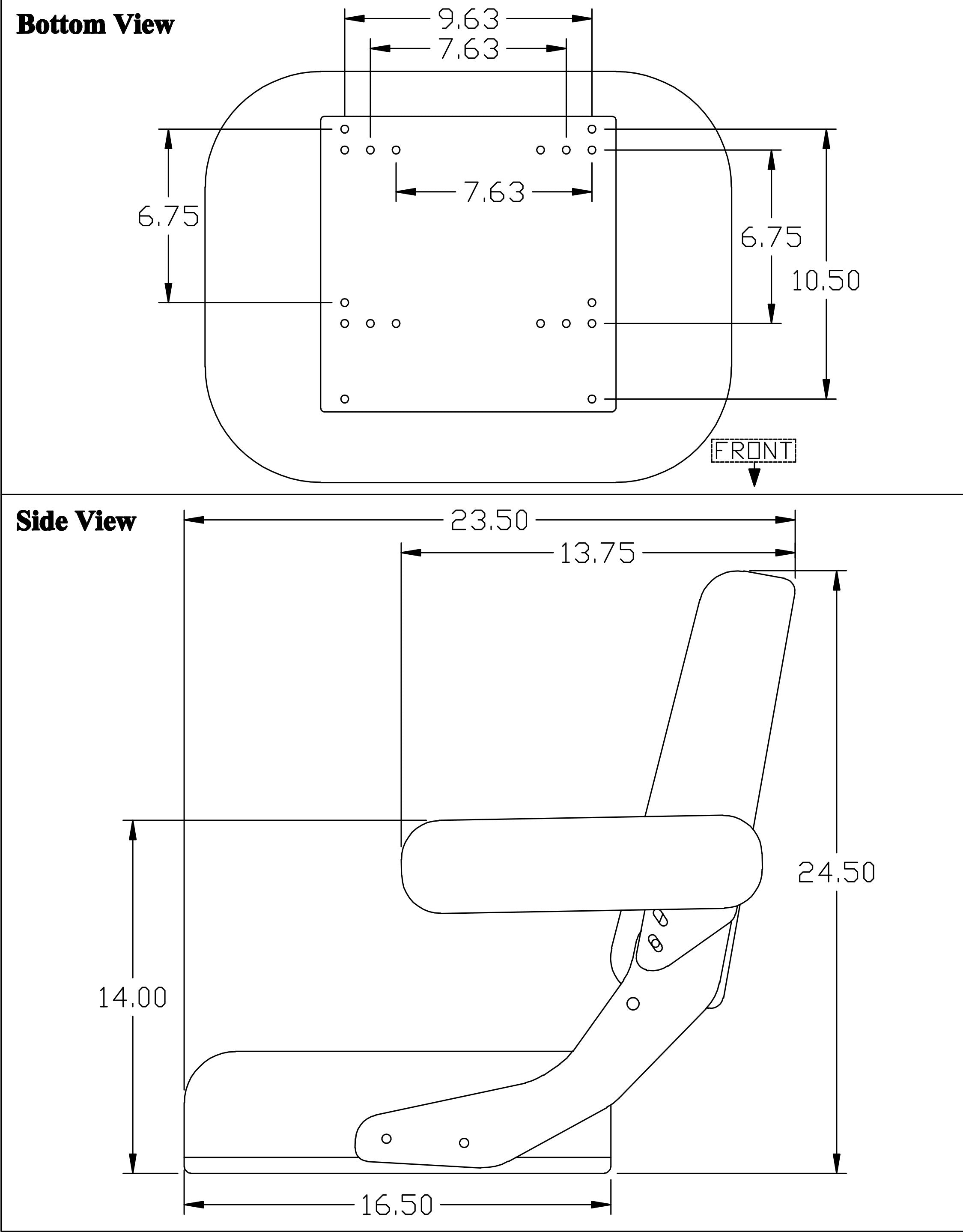 - 2" thick armrest, 4" thick backrest and 4" thick contoured seat cushion ensuring operator comfort