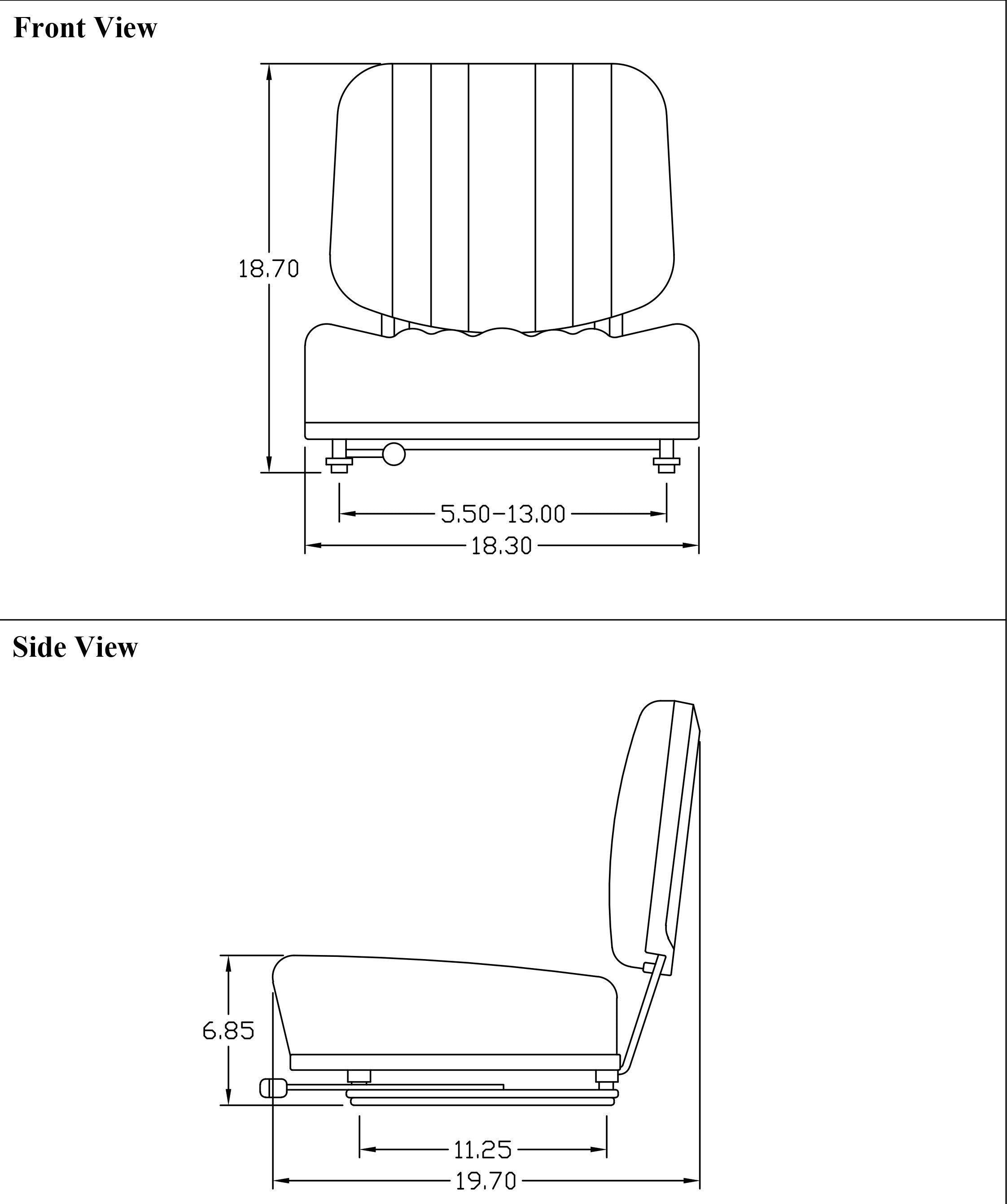 - Seat dimensions (W x D x H): 18.3" x 19.7" x 18.7"