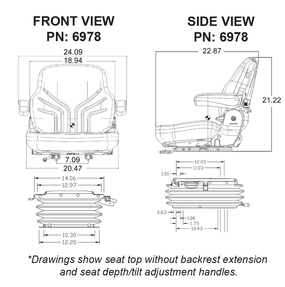 - Slide rails provide fore/aft adjustment ensuring operator comfort