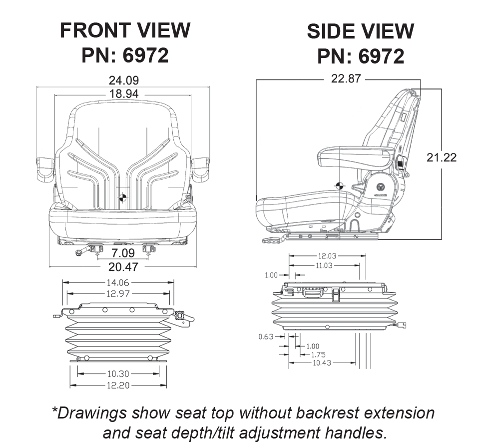 - Slide rails provide fore/aft adjustment ensuring operator comfort