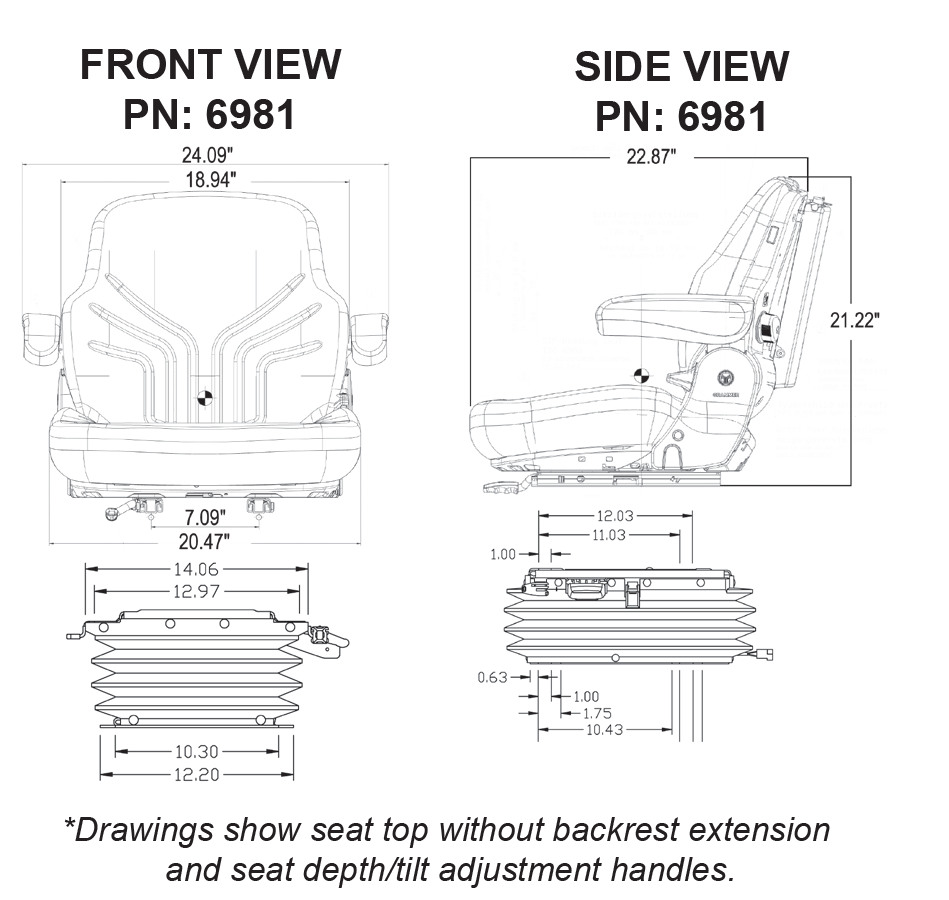 Massey Ferguson Tractor with Bostrom Forward Angled Suspension Replacement Seat & Air Suspension - Fits Various Models - Black/Gray Cloth