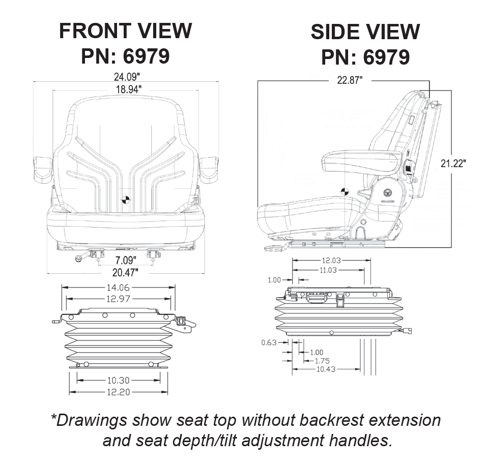 - Slide rails provide fore/aft adjustment ensuring operator comfort